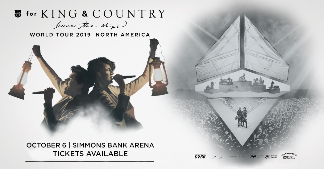 Two-time GRAMMY® award-winning Australian duo, for KING & COUNTRY, comprised of brothers Joel & Luke Smallbone, released their much anticipated third studio album, burn the ships in October 2018…a sweeping musical landscape that explores themes of new beginnings, forgiveness, hope, and love. The album’s soaring debut and GRAMMY® nominated single, “joy,” held the No. 1 spot for four consecutive weeks, marking the group’s highest debut on three Billboard charts. Their current single, ‘God Only Knows’ has reached #1 on the Billboard Audience chart and has accumulated over 27 million total streams. This marks for KING & COUNTRY’s fastest rise to No. 1 to date. burn the ships has helped the duo earn three Billboard Music Awards nominations. To kick off 2019, Joel & Luke launched Part I of their burn the ships | world tour, performing in their Australian homeland for the very first time and selling out every show, including the iconic Sydney Opera House. Their previous album, the gold-certified RUN WILD. LIVE FREE. LOVE STRONG. debuted at No. 1 on iTunes, and produced two GRAMMYs®, four Dove Awards, and a hugely successful 60-date arena tour. They have garnered four No. 1 hits, nine Top 10 hits, and had songs featured on the Emmys, Super Bowl, Sunday Night Football and other high-profile events, including performances on The Tonight Show, Today Show, and Jimmy Kimmel Live! “For the first time since for KING & COUNTRY began, we’re going to be able to share the music and the heart behind it in the most inspirational and theatrical way we’ve been able to date. We cannot wait to embark on this voyage with you!”