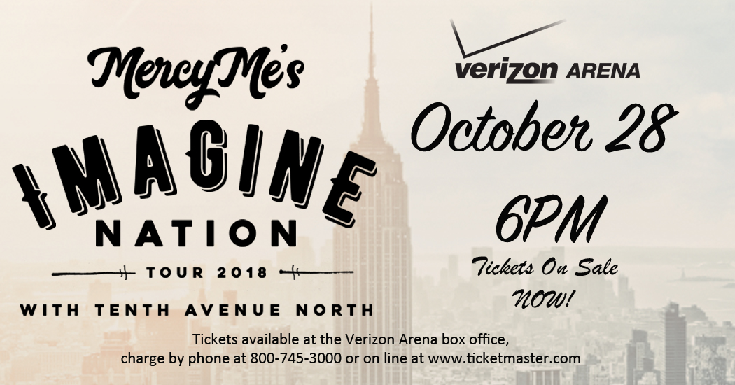 5X GRAMMY ® nominated MercyMe’s “The Imagine Nation Tour” with longtime friends Tenth Avenue North will trek over 20 cities nationwide beginning in Oct. of 2018. Indianapolis, New Orleans, San Antonio and more are on the docket for the two-month run.