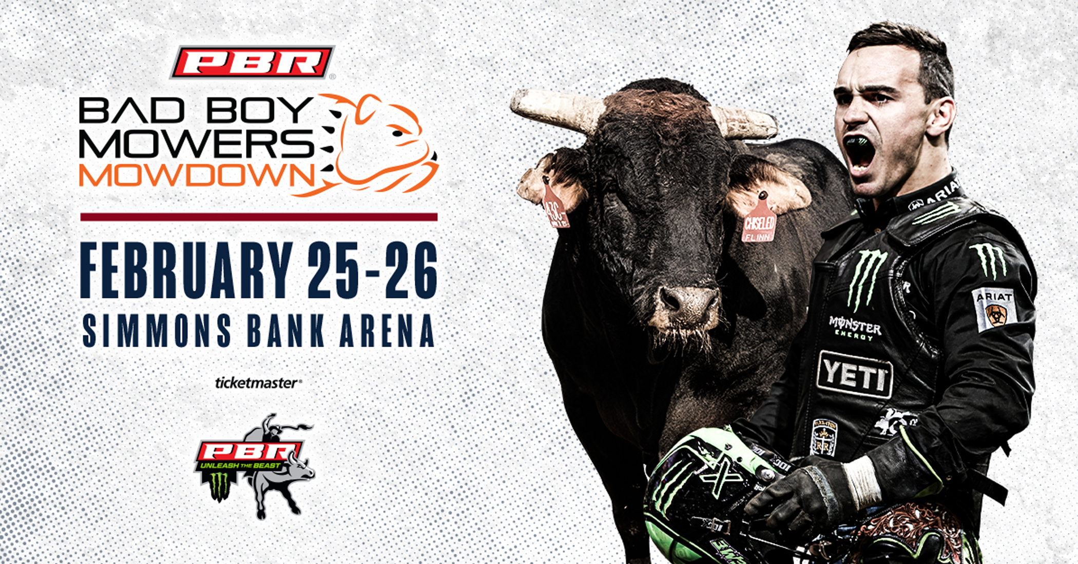 For the ninth time in league history, the PBR’s (Professional Bull Riders) elite Unleash The Beast will buck into North Little Rock, Arkansas, holding the Bad Boy Mowers Mowdown on Feb. 25-26 at Simmons Bank Arena.