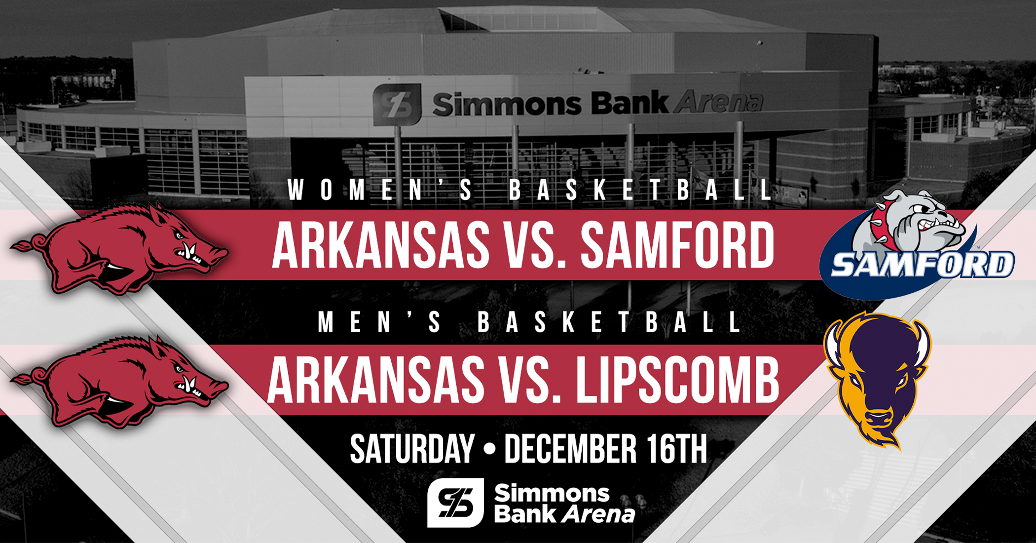 The Arkansas Razorbacks Men's Basketball Team will be playing against the Lipscomb Bisons at 5PM.