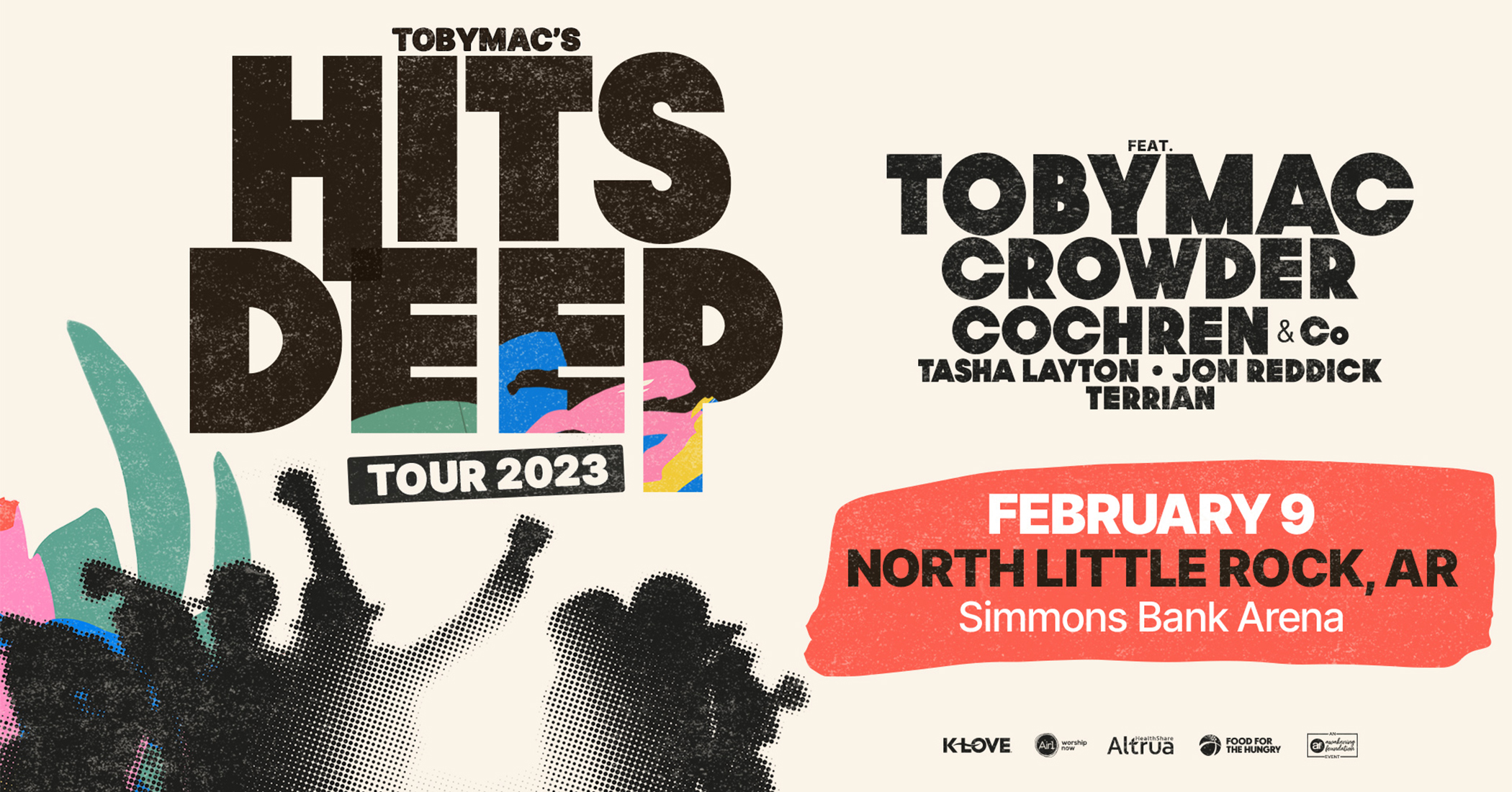 TobyMac’s Hits Deep Tour is gearing up for another amazing year in 2023! TobyMac and the DiverseCity Band return to the stage with support from fan favorite CROWDER, Cochren & Co, Tasha Layton, Jon Reddick & Terrian. You do not want to miss this night of hit music and fun, so make plans now for a night you won’t forget. TobyMac’s Hits Deep Tour is supported nationally by KLOVE, and Air1 Radio, Food for the Hungry, and Altrua HealthShare. Tickets go on sale Thursday September 22, at 12pm ET. You can save 20% on all tickets from September 22 through October 13 when you enter the code INSIDER during our Fan Appreciation Sale!